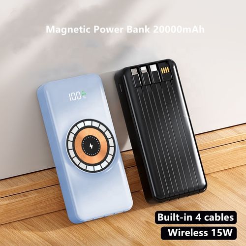 Super Fast Charging Powerful Magnetic Power Bank 20000mAh Battery Pack PD 20W Built in Cable Travel Wireless Charging Power Bank